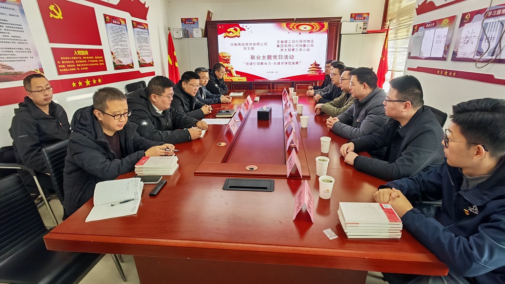 為深入學(xué)習(xí)貫徹黨的二十屆四中全會(huì)精神,推動(dòng)黨建與業(yè)務(wù)深度融合,近日,銷售公司黨支部第三黨小組與河南禹拓商貿(mào)有限公司黨支部聯(lián)合開展“黨建引領(lǐng)聚合力,共建共學(xué)促發(fā) 展”主題黨日活動(dòng),雙方黨員代表參與此次活動(dòng)。
