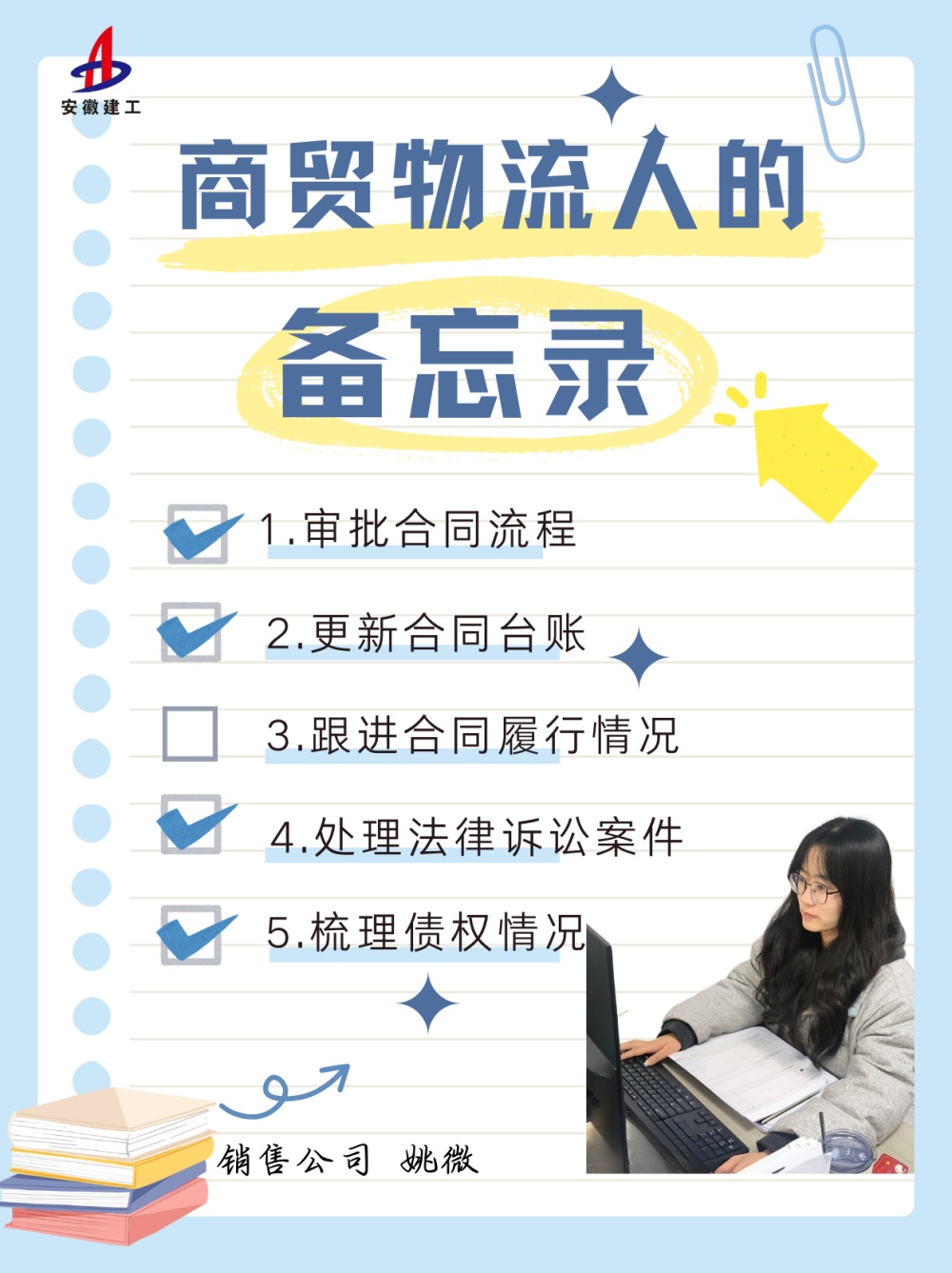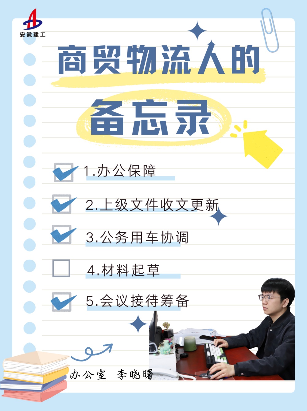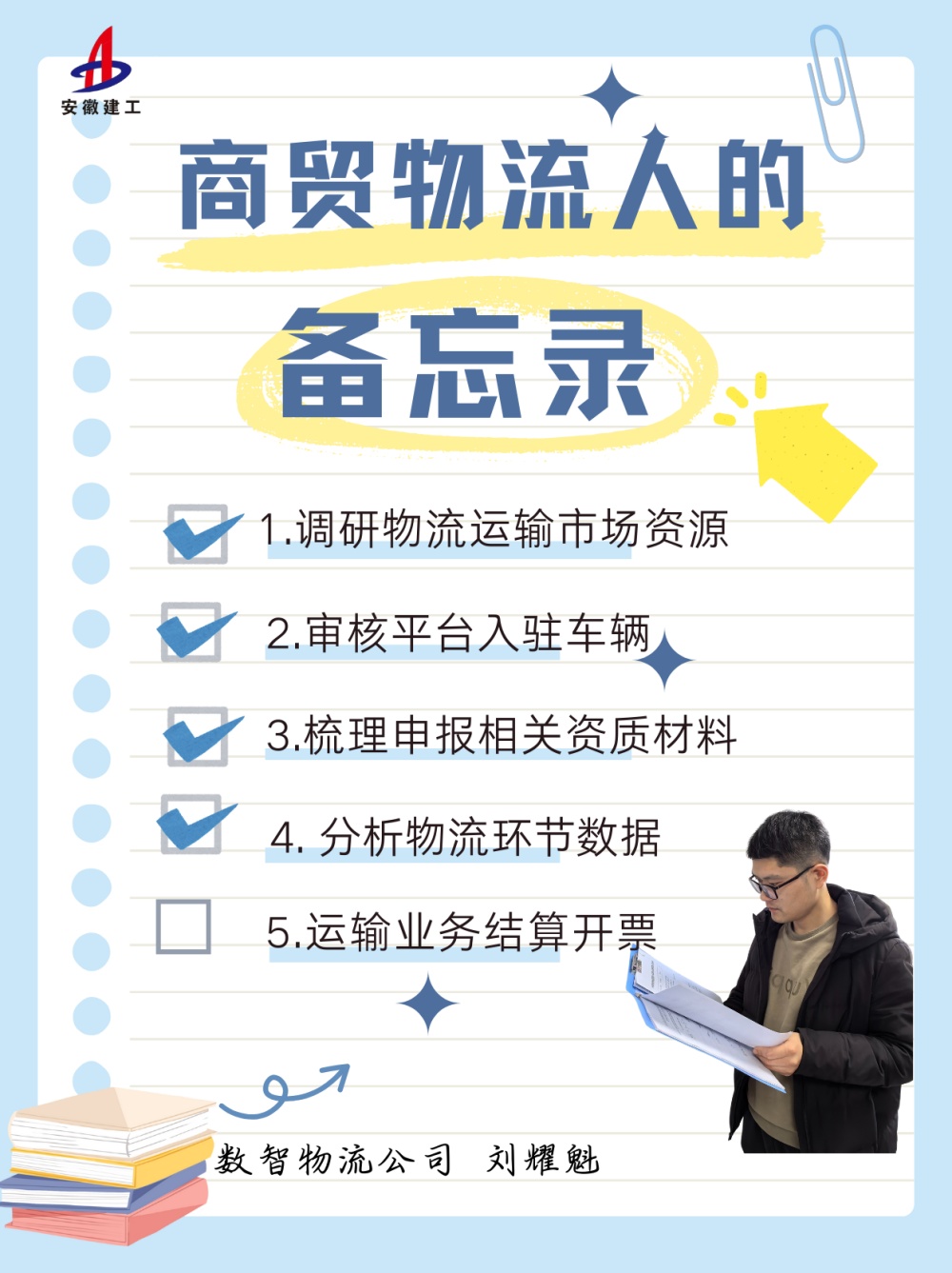 有一種忙碌,在合同與單據(jù)的字里行間;有一種忙碌,在物資與車(chē)輛的流轉(zhuǎn)途中;有一種忙碌,在辦公與服務(wù)的瑣碎日常里......這些藏在平常工作中的細(xì)碎與認(rèn)真,拼湊成了商貿(mào)物流人專(zhuān)屬的“備忘錄”,今天,就讓我們一起解鎖TA的“備忘錄”。
